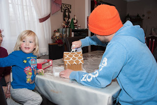 The next day we participated in the second annual Ginger Bread House build. It was a lot of fun for everyone. Strong winds on Christmas Day brought a lot of damage to the area, including power outages, downed power poles, broken branches, downed trees, roof and siding damage. A lot of turkeys didn't get cooked on time, leaving many in the dark without a hot meal. We were very fortunate with only a bit soffit damage. Repairs will have to wait until spring. All in all, it was a very festive holiday.